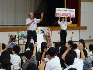 岐阜市立鶉小学校からエイズ予防講話の依頼があり、6年生の児童約130名を前に体育館で授業を行いました。