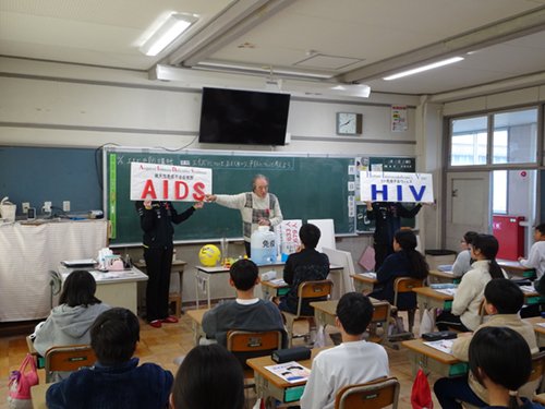 今年も大野町立西小学校より依頼があり、6年生の教室にて9回目となるエイズ講話を実施しました。多くの児童が一度の説明で、エイズやHIVの言葉について理解をした様子であり、質疑応答の時間には、がんなど他の病気との違いや、治療薬の将来的な価格変動についてなど、踏み込んだ質問が複数あがりました。この日は校長先生や校医の先生、母親委員の保護者の方も授業を聴講され、何度も頷きながら話を聞いてくださっている様子が印象的でした。